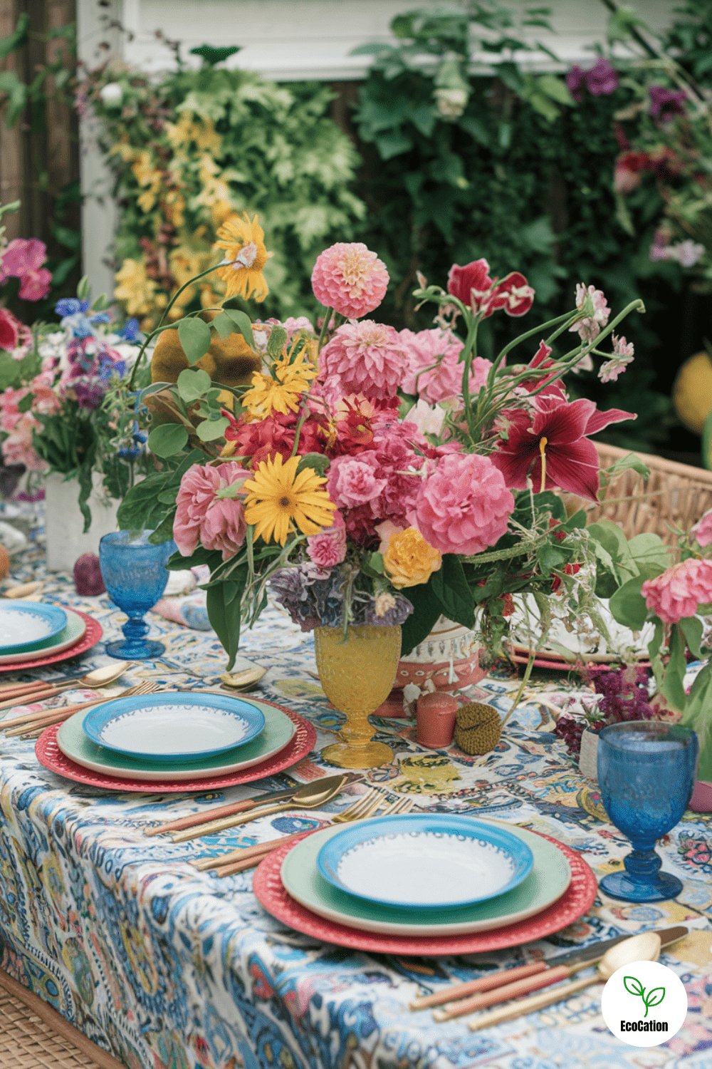 For a lively and eclectic garden party, use bold-colored tableware, patterned linens, and quirky fresh flower centerpieces. A mix-and-match approach creates a relaxed, vibrant atmosphere that s perfect for lively conversations and laughter with friends.