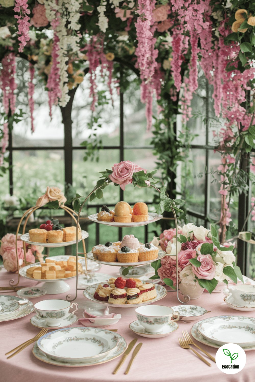 A whimsical garden tea party can include a floral canopy, delicate china, and tiered stands overflowing with pastries and fruit tarts. The colorful flowers and sweet treats will create a picture-perfect scene that s both dreamy and inviting.