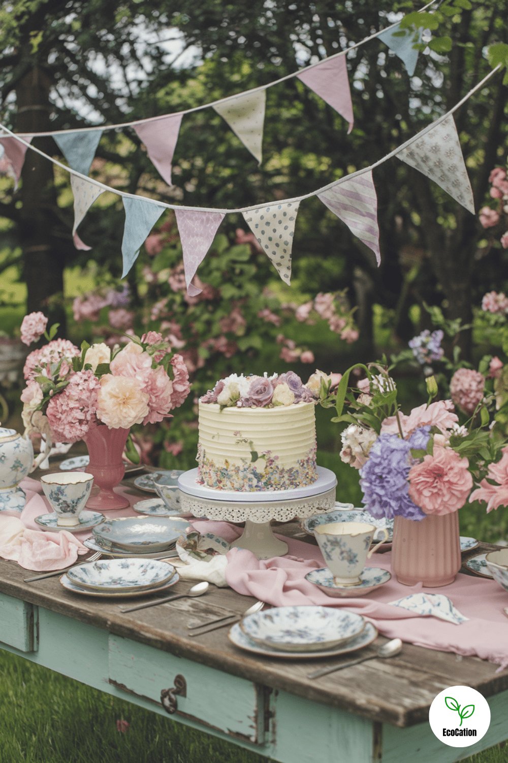 For a dreamy tea party, hang pastel-colored bunting and display mismatched vintage china. A flower-adorned cake on a rustic wooden table will steal the show. Include tea-infused cocktails or mocktails for a modern twist on the traditional garden tea experience.
