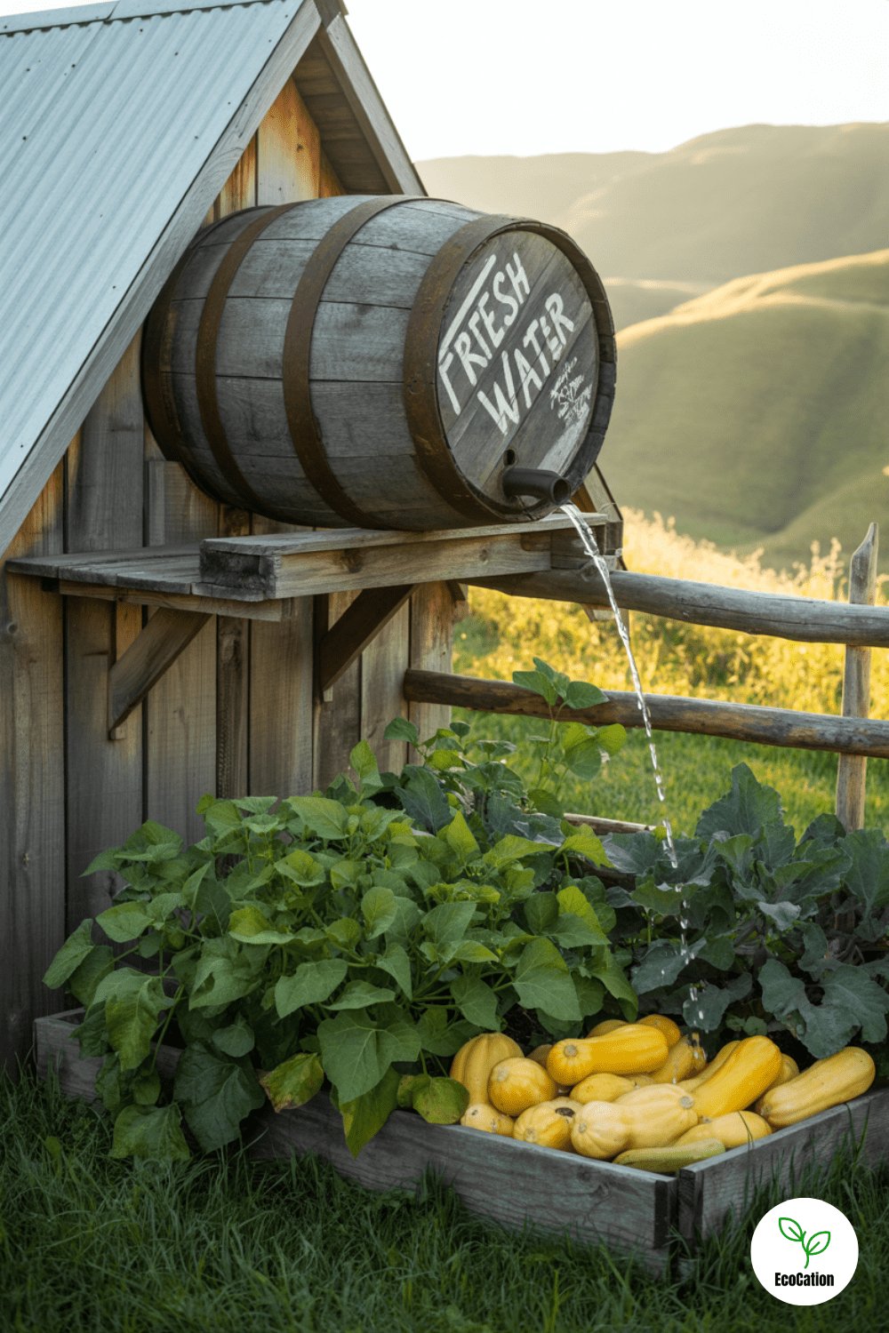 A simple rain barrel feeds a drip system that waters beans, squash, and leafy greens. No pumps, no fuss just smart, off grid thinking. This setup is ideal for drought-prone areas or true self reliance.