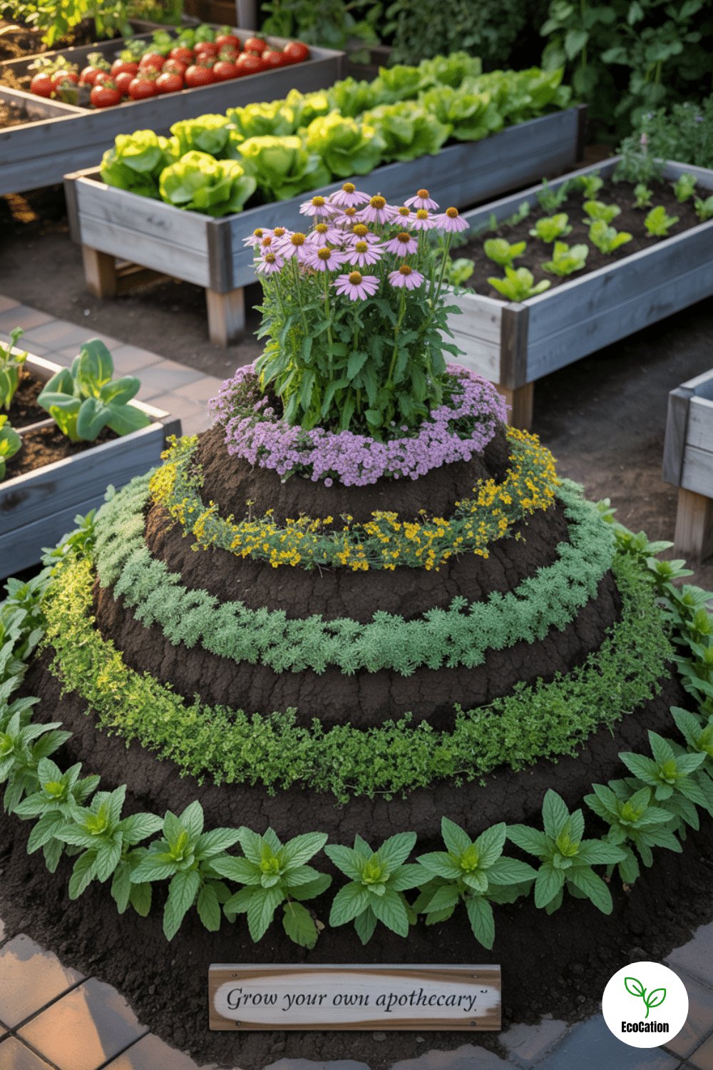 This beautiful spiral mound packs flavor and healing into one compact design. With herbs like mint, yarrow, and echinacea, it s an herbal garden with a purpose. The spiral shape conserves water and lets you grow a variety of plants in a small footprint.
