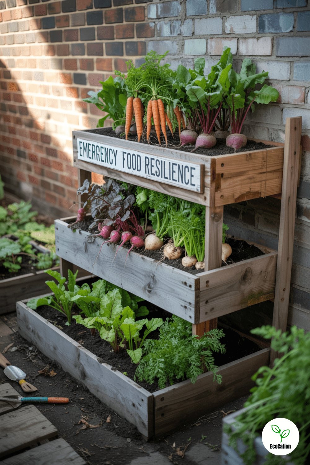 Stacked raised beds full of root veggies like carrots and beets turn even the smallest backyard into a high-yield survival zone. Growing upward instead of outward saves space and makes harvesting easier. Mix in some permaculture principles like layering mulch and planting companions for a low-maintenance, high-output setup.