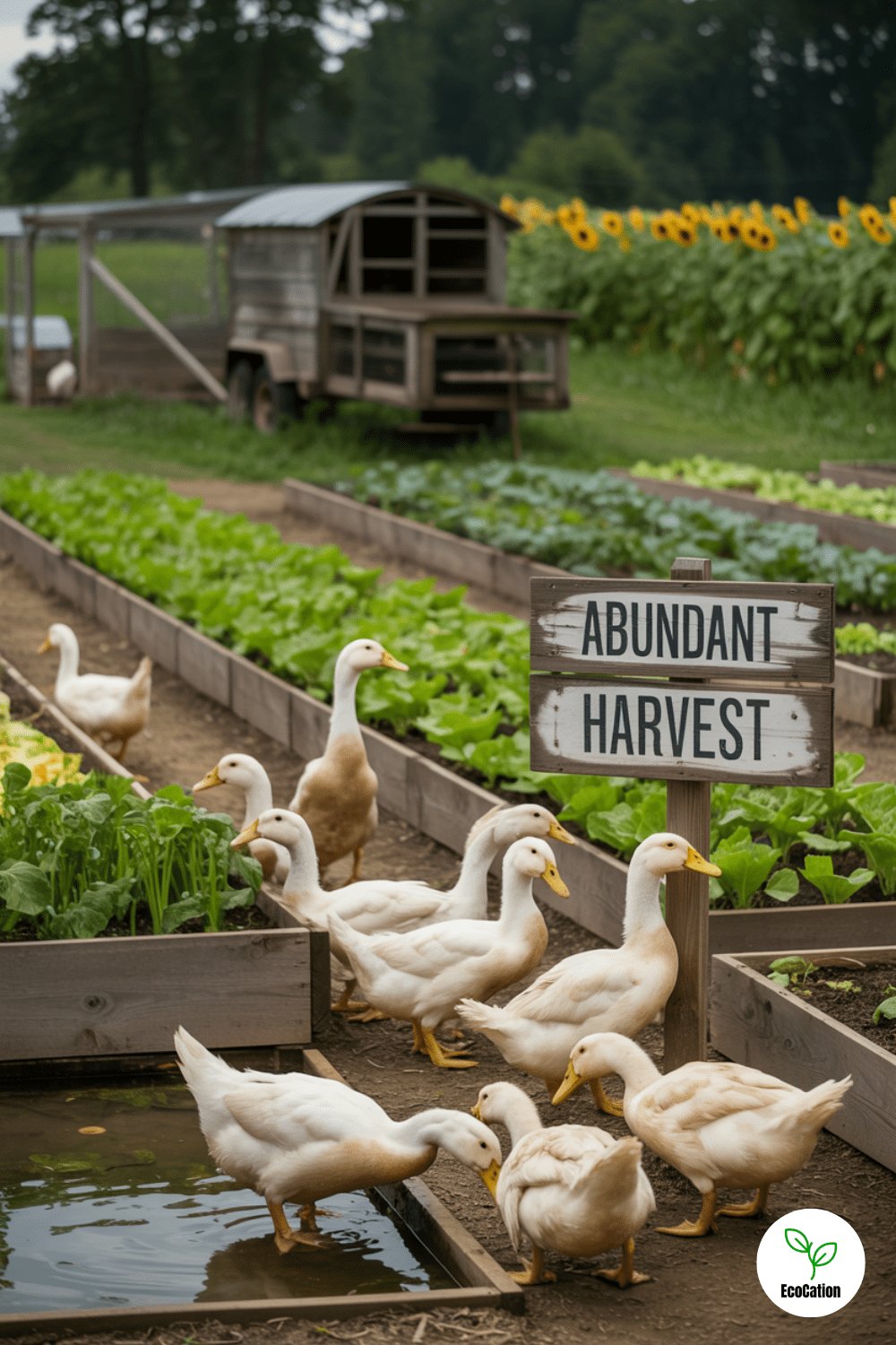This integrated setup lets ducks roam between beds, eating bugs and fertilizing as they go. A mobile chicken tractor adds even more synergy. It s permaculture garden design at its playful, practical best.