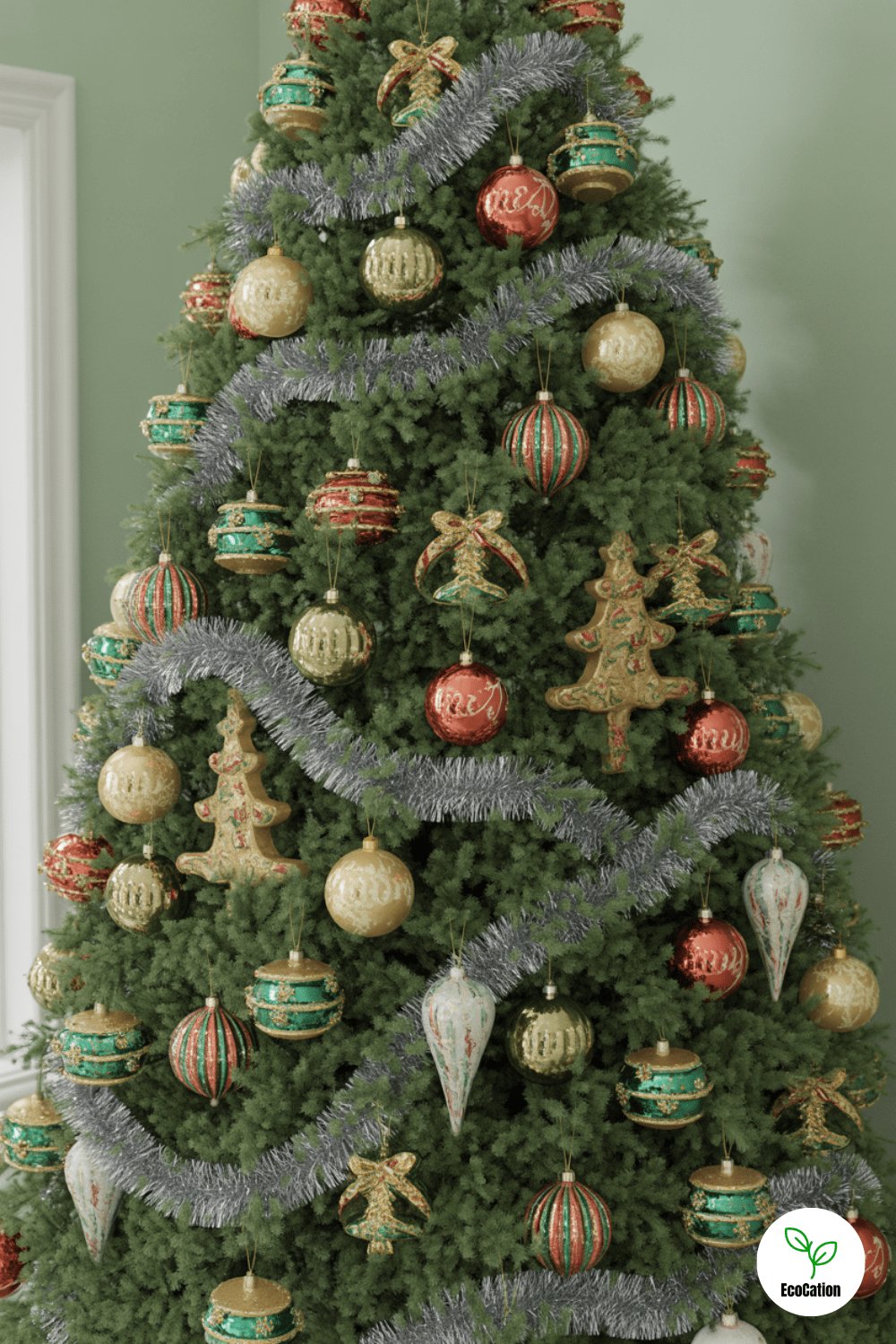 Adorn your full tree with a mix of colorful, mismatched ornaments from various eras, each holding a special memory. Drape strands of silver tinsel over the branches for that extra sparkle, creating a truly nostalgic and personal holiday display. The mismatched look is beautiful because it tells your family story.