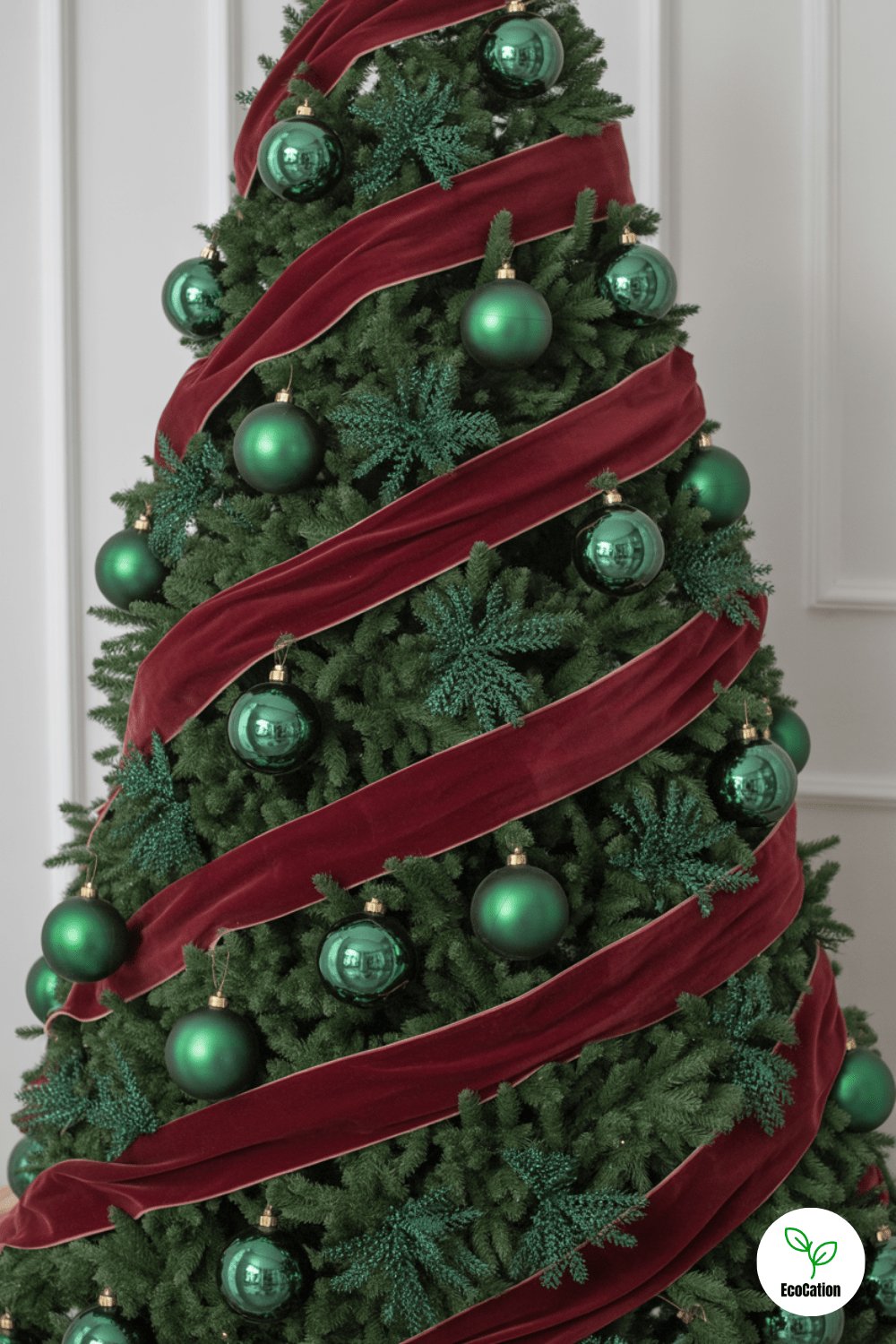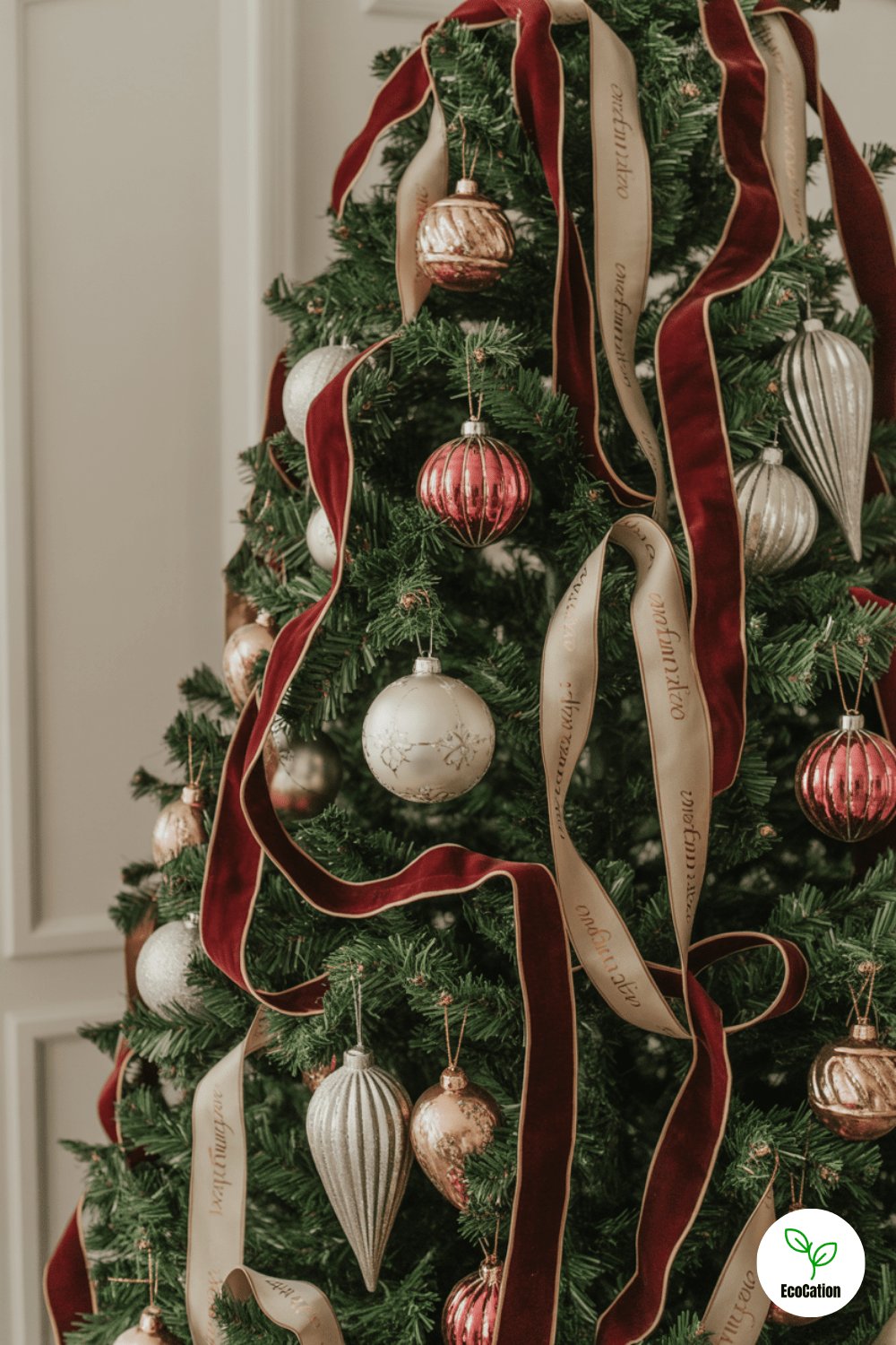 Weave rich burgundy velvet ribbons throughout the branches of your tree for a rich, textured look. Pair them with deep emerald green glass ornaments for a truly sophisticated and classy look. This combination exudes opulence and festive elegance, perfect for a formal dining room.