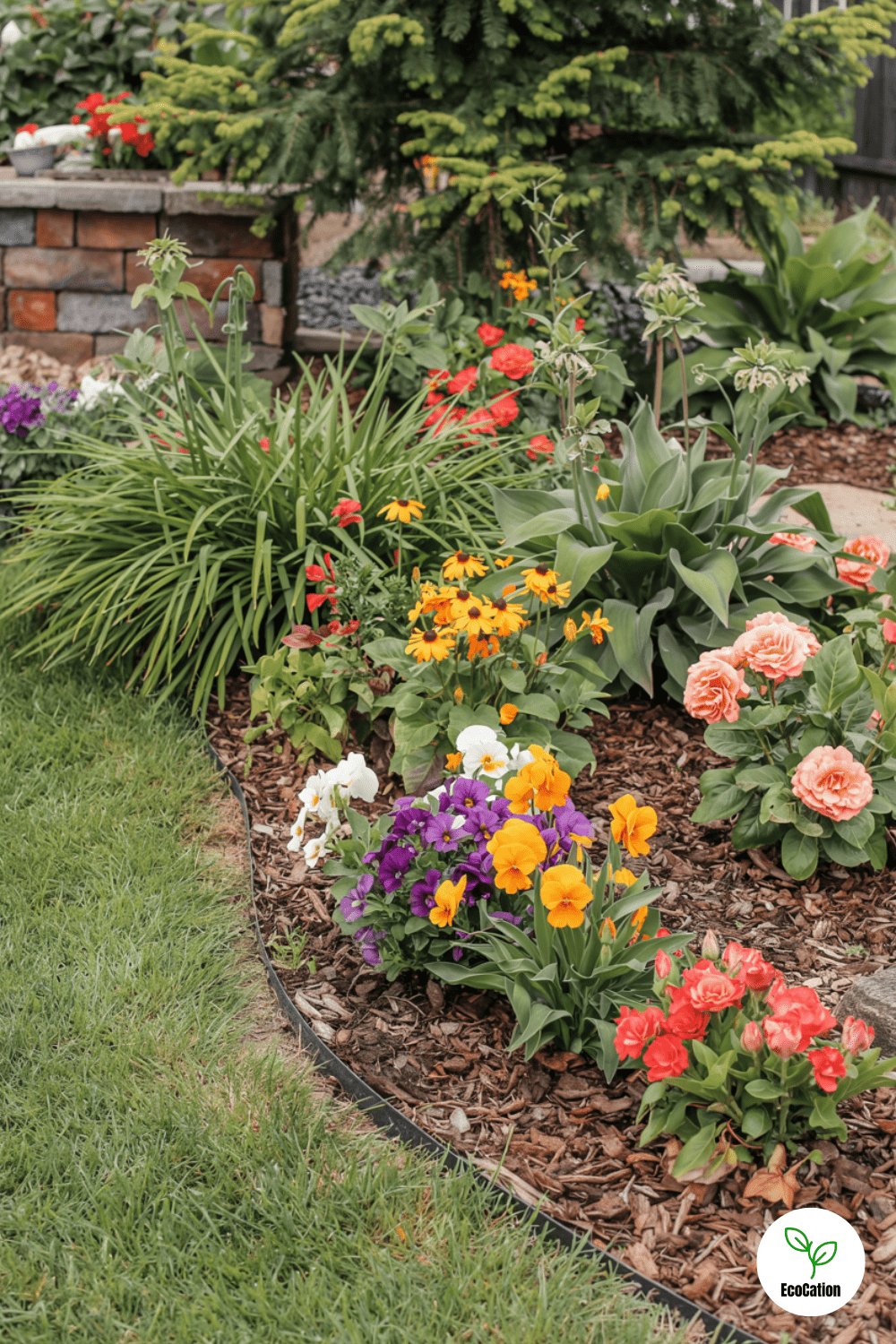 Create visual interest with contrasting mulch colors arranged in patterns. Swirls or checkerboards add playful personality. Outline designs with flexible garden edging before filling to maintain clean lines.