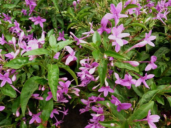 Pentas forms bright, star-shaped flowers, during the entire summer, in bold shades of purple, red, white, pink, or purple. This perennial plant can grow up to 18-36 inches long, in a sunny spot, that receives 5-6 hours of bright light.