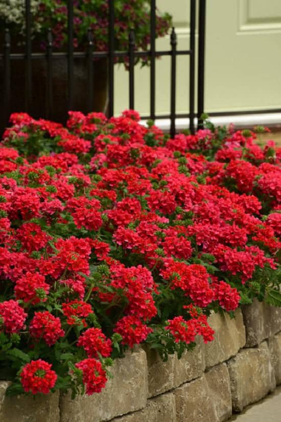 Verbena flowers without pause from early summer to fall. This tender perennial showcases a cluster of nectar-rich red, white, yellow, orange, or bi-colored flowers. It is sun-loving and attains a height up to 12-30 inches in a trailing or upright form.