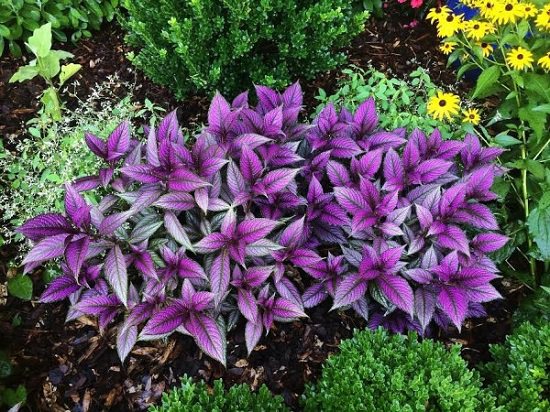Gardeners admire Persian shield due to its striking purple foliage that has a pearly shine. The distinct color makes it an outstanding specimen plant, perfect for garden beds, borders, or containers. Grow Persian shield in full sun to part shade.