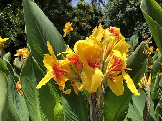 This easy to care tropical bulbs are admired for their large leaves. Canna plant opens in ornamental stalks of red, yellow, orange, pink, salmon, or bi-colored flowers, from mid to late summer in hot, humid conditions.