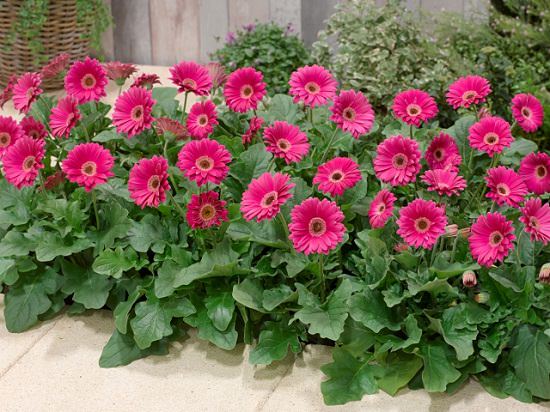 Gerbera daisy is a herbaceous perennial that can grow up to 10-18 inches tall and 1-2 feet wide. The plant features ray-like petals, of pale pastel yellow, pink to bold orange color and red flowers. This vivid colored plant prefers rich, moist soil and full sun to partial shade.