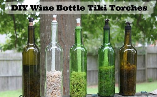 If you do not have a fence to mount the wine bottle tiki torches like mentioned above, then you can make a simple, stand-alone wine bottle tiki torch instead.
