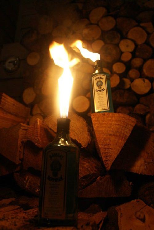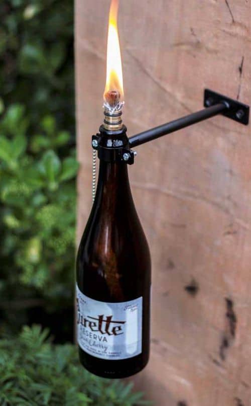 Reuse empty wine bottles as these tiki torches, which you can mount on a fence or somewhere in your garden or porch. Get the details here.