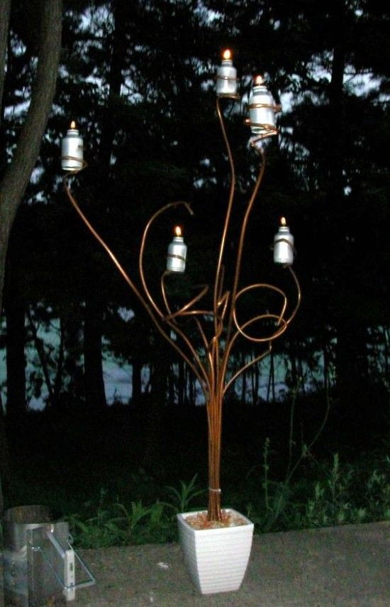 You ll need copper pipe, hacksaw, sandpaper, zip ties, planter, rock, and oil lamps. Visit Instructables to know the full procedure.