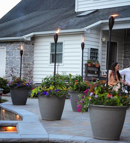 You can choose to bury the tiki torch into the large planters for a beautiful, decorative, and floral effect. If you were disappointed after realizing you cannot put up the tiki torch poles because you lack grass space.