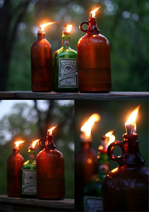 Choose bottles with different colors so that they reflect a beautiful colored hue in the light. These torches are as gorgeous as they are easy to make. Details are here.