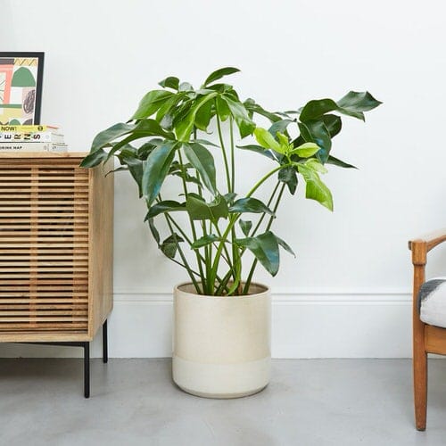 Super Atom looks like a miniature version of its sibling Selloum. It has ruffled leaves of a deep green hue and can grow up to 2-5 feet tall and wide with time.