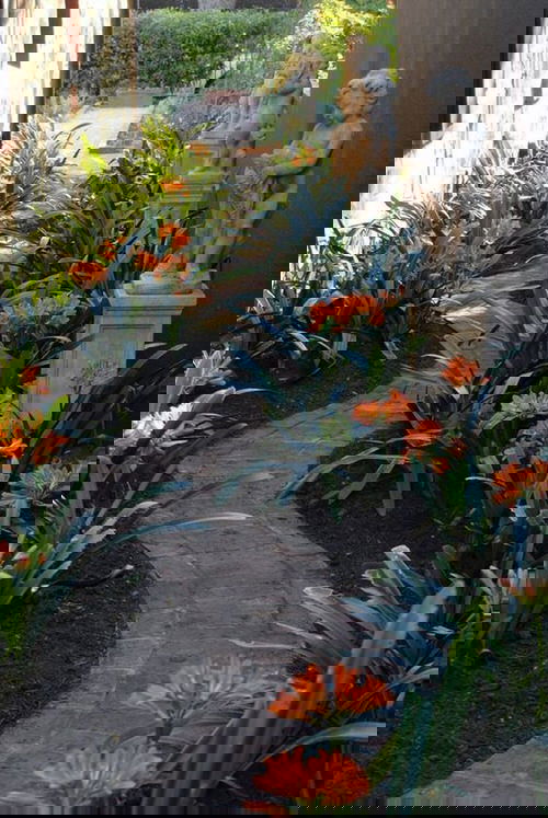 8. Stone Side Pathway with Flowers and Statues