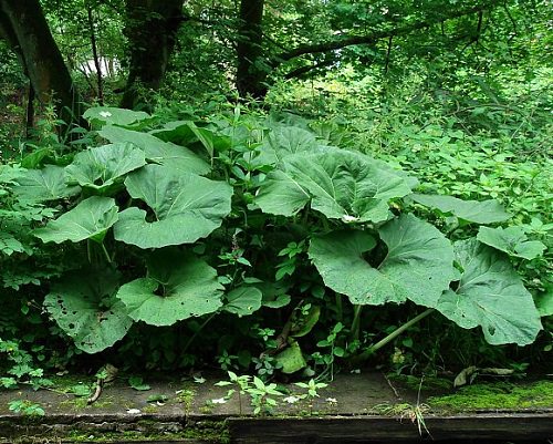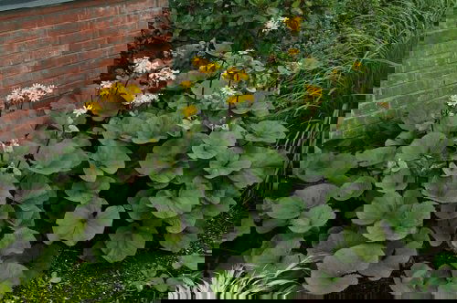 Also known as coltsfoot, this perennial features 25-30 inches wide kidney-shaped gigantic green leaves. The plant has a mounding growth form.