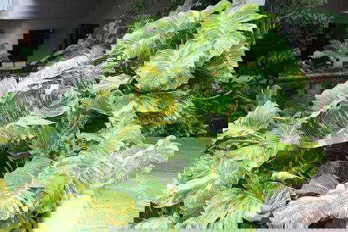 The impressive, huge size of elephant ears brings elegance and bold texture to your garden. This tropical plant does best in bright light.