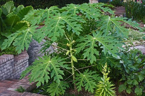 The large palmate foliage grows up to 2-3 feet across. It grows up to an impressive height of 10-15 feet and looks great in small gardens.