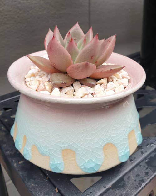 Blue Glow is a slow-growing succulent with beautiful rosettes of blue-green chalky leaves with serrated edges embellished in a gold-red ribbon.