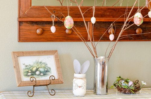 Use Dollar Tree succulents to make a super easy candle centerpiece that takes less than 10 minutes! Details are here.