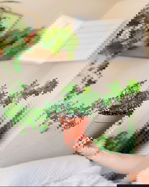 Cut a healthy stem, measuring 6 inches from this houseplant and dip it in a rooting hormone. You can plant it directly in soil at a spot that gets indirect sunlight.