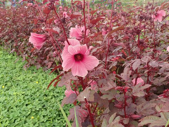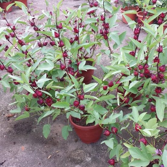 Hibiscus sabdariffa is a popular variety that produces white to calyces red flowers, with a red spot on every petal. This variety is edible and used in herbal drinks, medicines, and as a flavoring agent in the food sector.