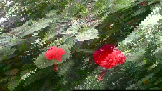 Kenaf is a member of the Malvaceae family. The plant exhibits a 3-4 inch wide single, red flower. This variety is popular for the fiber, which is used in making jute. It prefers well-drained soil and a sunny location.