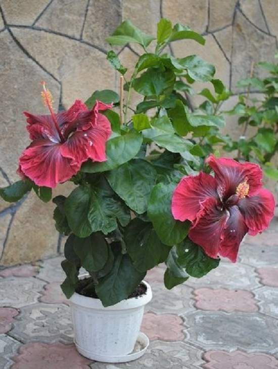 The black dragon variety has a deep burgundy shade and is not completely black. This flower has been awarded as The Hibiscus of the Year from the American Hibiscus Society. It can grow up to 3-6 feet tall, in full sun to partial shade.