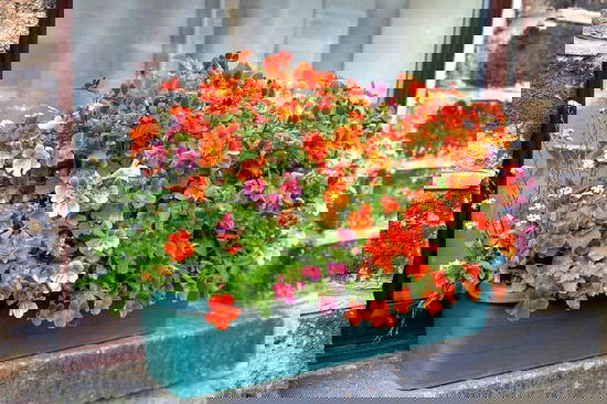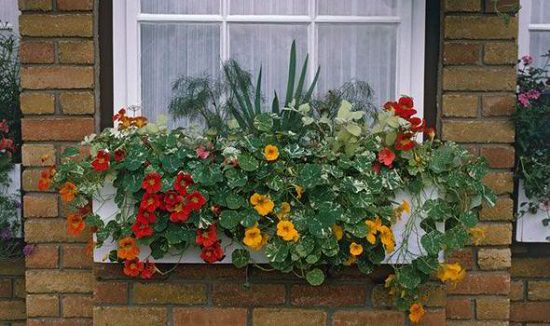 Funnel-shaped flowers in pink, red, and yellow hues of Nasturtium are popularly used for window boxes. The edible, bright flowers taste like mustard greens and can be used in salads too.