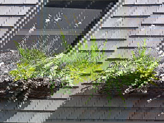 Ferny and threadlike leaves of Cypress vine look fairylike with star-shaped crimson flowers during summer and fall, attracting sunbirds towards it. It grows well in length and spreads vigorously, 6-8 feet, so use larger window boxes.