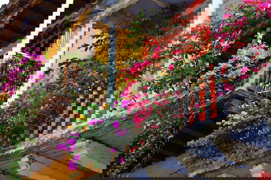 Neon tricolored, bell-like flowers, of red-purple hues, are famous for attracting a hummingbird. Fuchsia flowers look exceptional in hanging baskets and window boxes.
