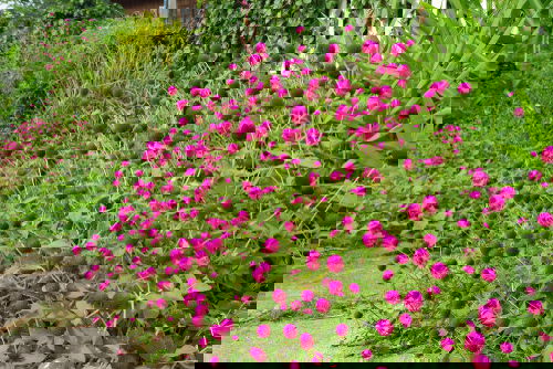 The bright magenta bracts organized in globose with papery texture and clover-like flowerheads shine in a long summer to frost blossom. Though true flowers are trivial while looking closely you can see white to yellow trumpets.