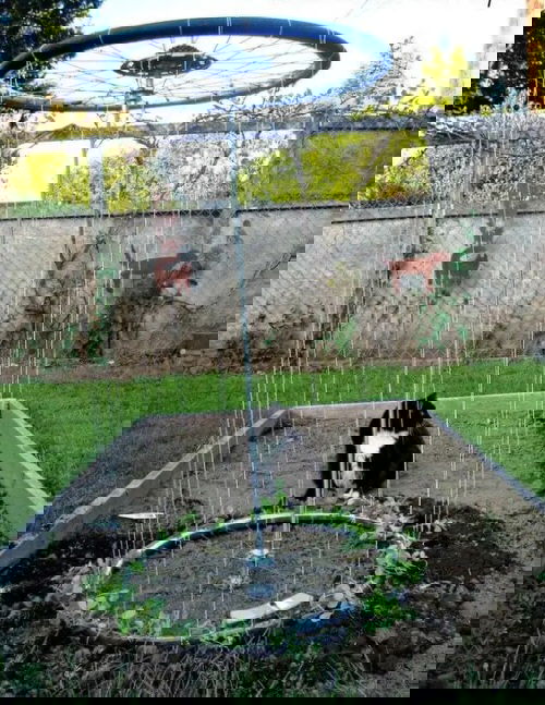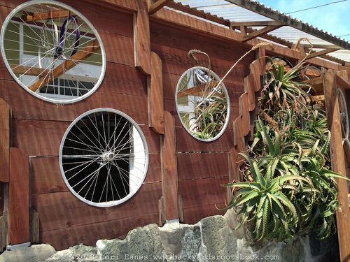 14. Bike Rims on a Garden Wall for Ventilation