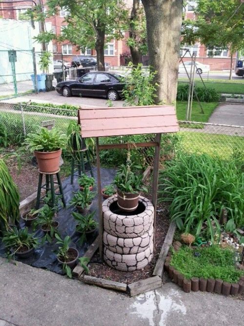 6. Well Shaped Planter Using Old Tires