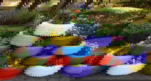 10. Colorful Tire Planters for Flowers
