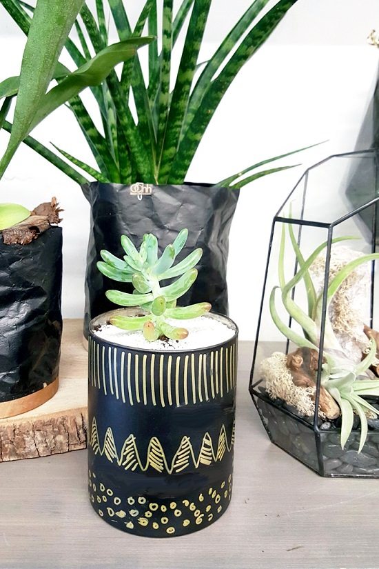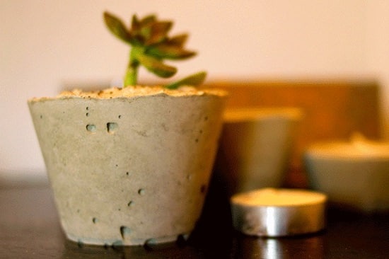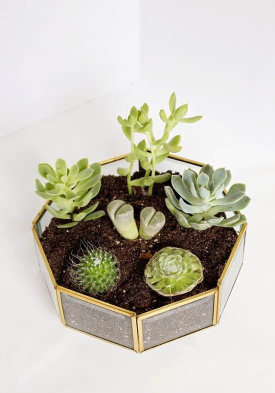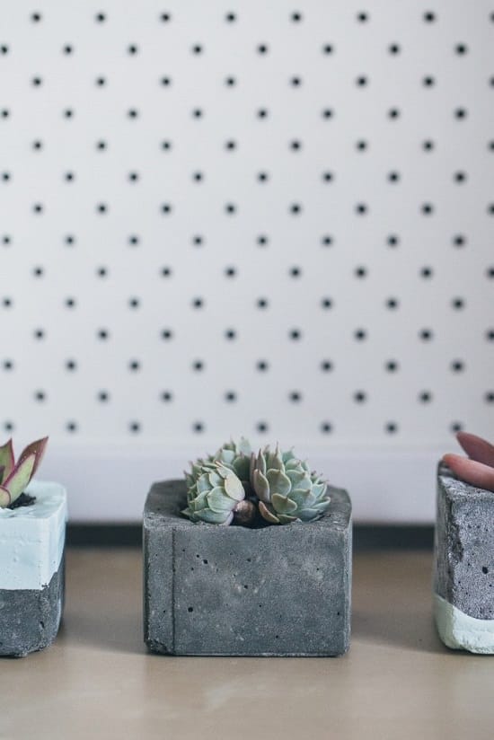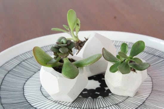 DIY the concrete planters like above to plant your favorite succulents. All the essential information is available in this tutorial.27. DIY Metallic Geometric Planters