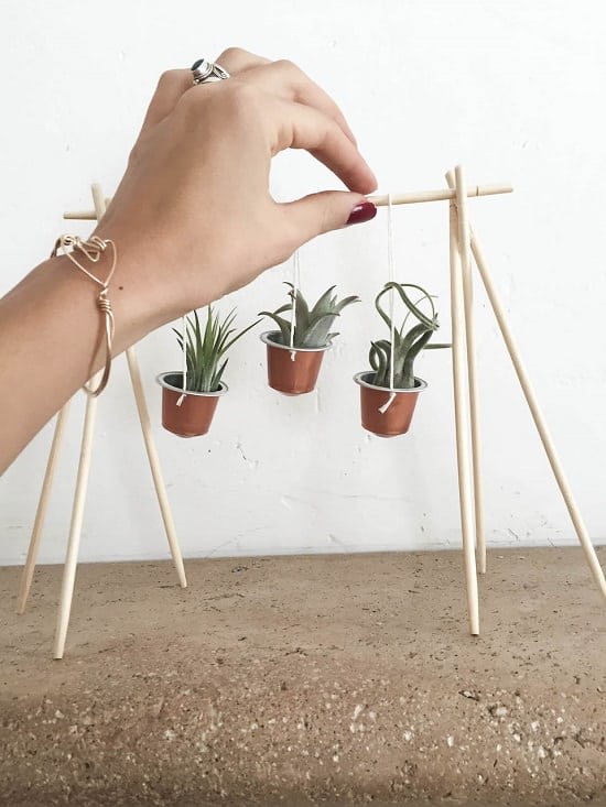 Recycle the empty cans from the kitchen and make them attractive can succulent centerpiece in your home or porch. Click here to know more.23. DIY Tiny Planters
