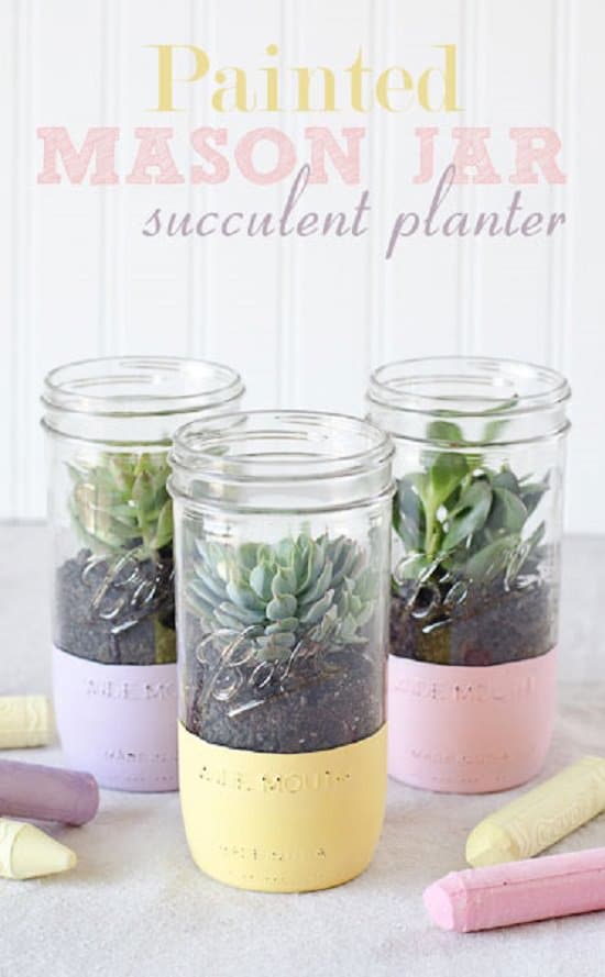 Create this super cool succulent planter by weaving the beads. The step by step tutorial is here!18. Painted Mason Jar Succulent Planter
