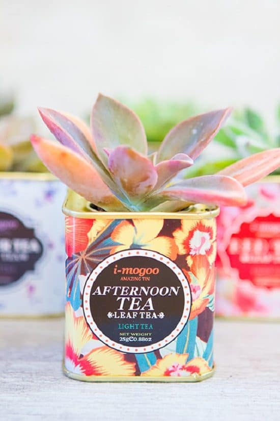 Make use of old tea tins to make succulent planters. Click here to see the steps involved.22. DIY Recycled Succulent Centerpiece