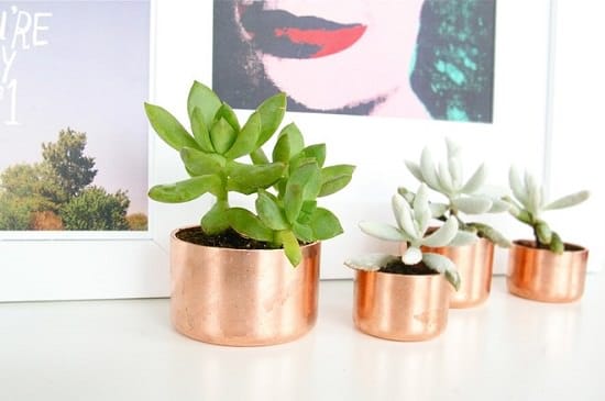 Create faux copper planters varying in geometric shapes within 5 minutes. We found the DIY at curbly.