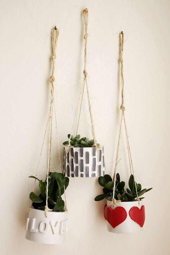 Create these charming multicolored pots with dip dying. You can plant succulents in these. Get the detailed tutorial here!6. Diamond Hanging Planters