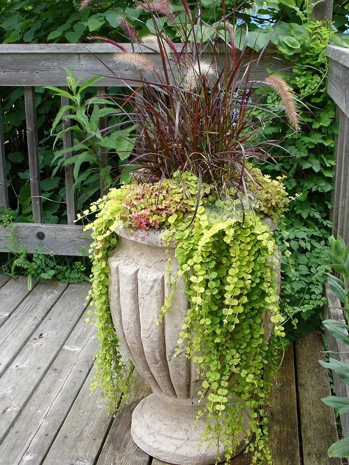 This eye-catchy, trailing annual gives you a nice way to include shimmering, silver foliage into pots. Apt for , , or even hanging over the sides of a container. Dichondra demands partial shade to produce heart-shaped, soft foliage.