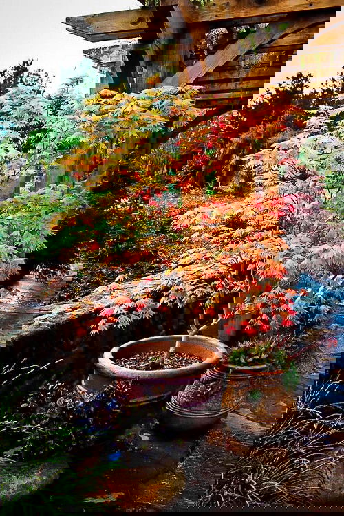 There are several dwarf to semi-dwarf varieties of Japanese maple that grow remarkably well in pots. And not just that, varieties like Mikawa Yatsubusa, Murasaki Kiyohime, and Viridis can grow in a shady space too, albeit with a few hours of sunlight.