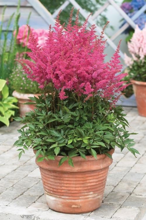 Brightening up the shady gardens with its white, pink, and red flowers that match perfectly with its deep green foliage, astilbe is also a great plant to attract butterflies and beneficial insects. Even when they are out of bloom, their foliage continues to look striking.