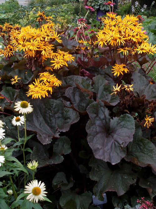 It showcases a huge leaf structure and makes for another great ornamental plant for shade. Some varieties even have gorgeous orange and yellow blooms, such as the Rocket Feature.