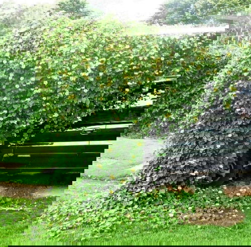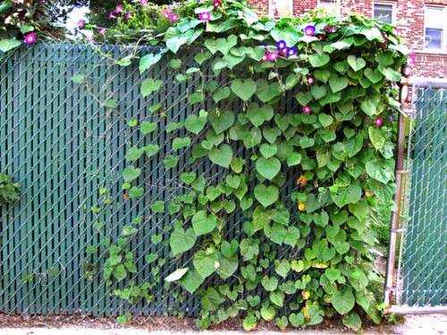 The attractive climbing vines of hops are an ideal choice for covering shabby fences, as its tendrils connect themselves to frames. Growing up to 15-20 feet in length, it offers dense foliage and provides superb privacy.