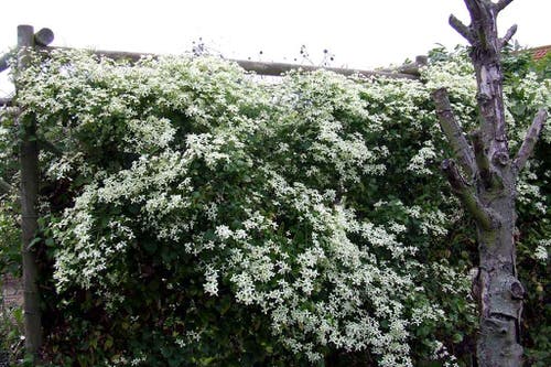 Chinese Star Jasmine is another great choice for covering a fence it shows off fragrant small white blooms and bright green vine and leaves.